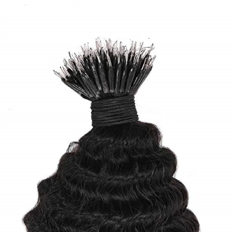 Deep Curly Nano Ring Human Hair Extension Pre Bonded Microlink Nano Beads Ring Hair Small Curly 100g 100strands